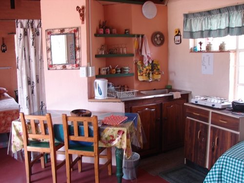 It is built of stone and offers very cosy accommodation for people do not wish to camp. It has a tin roof and a ceiling of reeds.