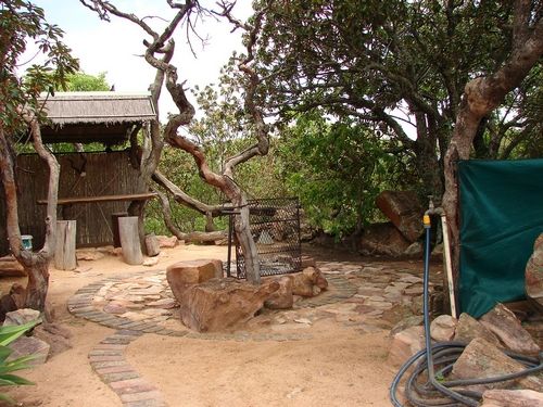 A bush chalet ("hartbeeshuisie"), hidden between large trees, is within walking distance from the camping area.